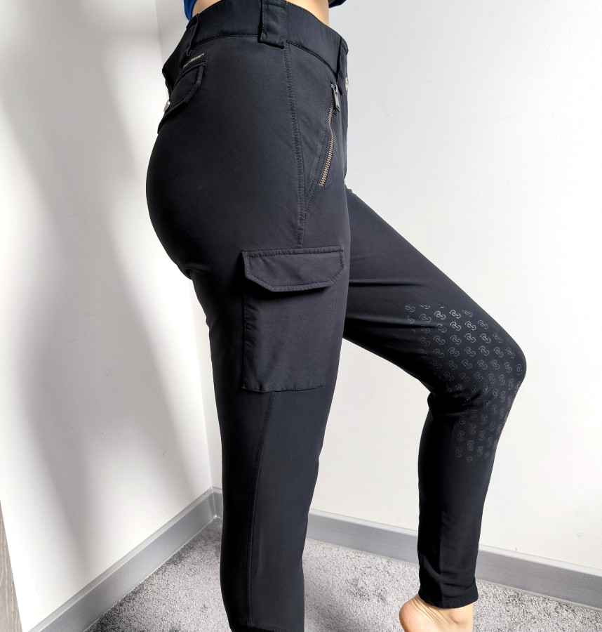 Bryczesy ps of sweden. Czarne. Model cargo z kieszeniami na udach. Możesz schować do nich wszystkie najpotrzebniejsze rzeczy podczas jazdy. Wygodne elastyczne. Fajnie dopasują się do sylwetki. Z wysokim stanem. Stan ogólny bardzo dobry, lej ma lekkie ślady użytkowania. Rozmiar 40 L pas 40 cm x2 biodra 45 cm x2 dl całkowita 92 cm