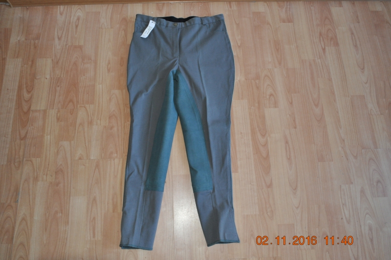 Sprzedam nowe bryczesy damskie w rozmiarze ok 42, pełny lej, szare, ładne obszycia w kolorze leja, lamówka wzdłuż nogawek.