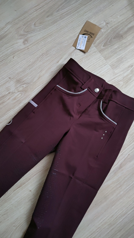 Bryczesy Riders choice. Piękny bordowy kolor z srebrnymi wstawkami. Wyglądają mega elegancko. to jedne z lepszych bryczesów pod względem wygody i elastyczności. Z kieszonką na udzie ! Nowe z metką Stan standardowy (20 cm ). Rozmiar 32 xxs , długie 92 cm , pas 33 cm x2 biodra 37 cm x2