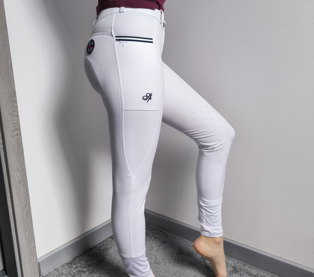 Bryczesy spooks. Białe konkursowe. Z kieszenią na udzie ! Mega atut który docenia Amazonki. Nogawka Flexi. Szlufki na pasek. Wygodne , idelane na starty. Jak na to że są białe to są baaardzo czyste. Jest jedno mini zabrudzenie z tyłu widoczne na zdjęciu poza tym nie zauważyłam nic więcej. Lej kolanowy silikon super stan. Zdecydowanie świetna sztuka. Rozmiar 34 XS pas 33 cm x2 biodra 38 cm x2 dl całkowita 88 cm standardowy stan
