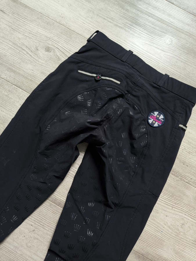 Bryczesy spooks. Granatowe. Lekkie cieńsze Softshellowe. Napewno są wygodne i elastyczne jak to Spooks. Mają kieszeń na udzie co docenią amazonki. Ładnie wyglądaja. Stan bardzo dobry ale na leju są lekkie ślady użytkowania i do wyprania. Rozmiaru nie ma ale jest to xxs pas 32cm x2 biodra 38 cm x2 dl całkowita 88 cm standardowy stan