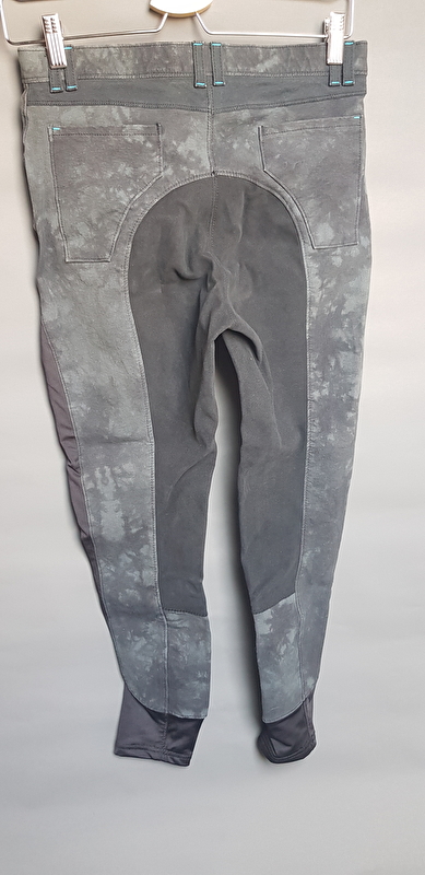 Piękne bryczesy, unikalny wzór-cieniowany szaro-czarny,pełny lej ze skóry syntetycznej,elastyczne wstawki na całej długości nogi przez co nie ograniczają ruchów,nogawka zakończona flex, z tyłu dwie kieszonki,efektowne niebieskie szwy przy pasie