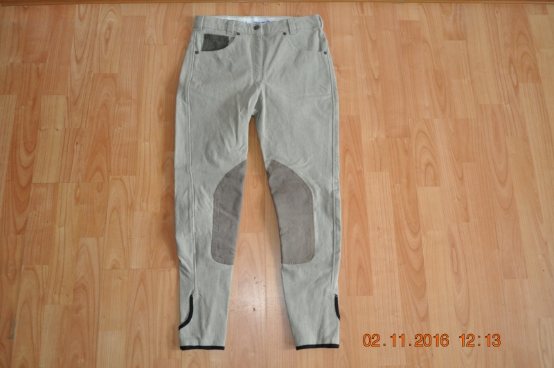 Sprzedam bryczesy firmy Whipper Collection, damskie, szare, z lejem kolanowym w kolorze ciemniejszym. Posiadają dwie kieszenie przednie, dwie tylne, czarną lamówkę przy nogawkach i zapięcie na rzepy.