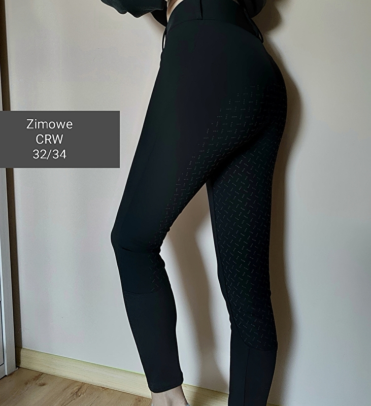 Bryczesy zimowe crw. Softshell podszyte polarem. Klasyczne z nogawka flexi. Stan bardzo dobry lej w kroku mniej lepki. Rozmiar 34 pas 34 cm x 2 biodra 39cm x 2 długość zewnętrzna 90 cm.Standardowy stan