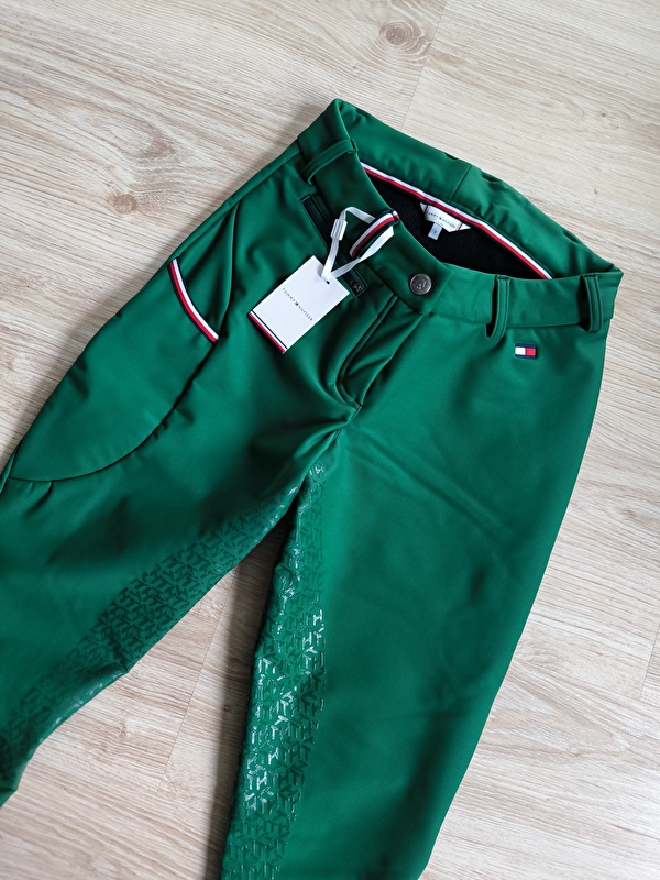 Bryczesy zimowe Tommy Hilfiger Equestrian. Zielone Podszyte ciepłym polarem. Solidnie. Do tego warstwa z zewnątrz jest Softshell więc są wodoodporne. Łatwo dopasowują się do ciała. Mają kieszeń na udzie ! Do tego podszyta polarem. Super sprawa. Zapięcie jest podwójne. Lej pełny silikon. Mega Bryczesy, na zimę idealne zapewnia ci odpowiednie ciepło komfort. Unikatowy kolor. Nigdy nie używane. Na chudsze łydki. Nie używane Rozmiar z metki S jednak lepiej pasują na S pas 34cmx2 biodra 39cmx2, dł calkowita 90cm standardowy stan