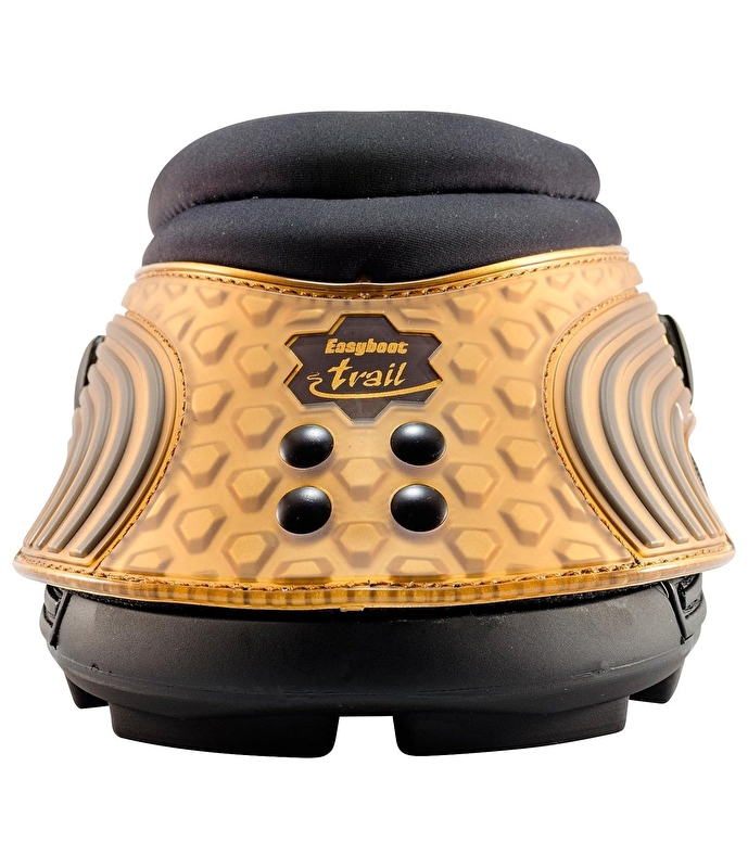 Bardzo łatwe do założenia buty na kopyta, które zapewniają doskonałą ochronę. W celu założenia buta ochronnego, należy odpiąć tylne rzepy i ułożyć but pod kopytem. Nylonowe paski mocowane z tyłu dla dodatkowego wsparcia. Dzięki nylonowej pętli pasek można przymocować z lewej lub prawej strony. Zwiększona trwałość dzięki wzmocnieniu z poliuretanu w kolorze brązu w górnej części materiału. Zintegrowany ochraniacz z gumy chloroprenowej z tyłu dla maksymalnej trwałości i wysokiego komfortu noszenia. Miękka wyściółka na koronie wykonana z kauczuku chloroprenowego na zewnątrz lub PU od wewnątrz. Nowe zapięcie na rzep o gładkiej strukturze z tyłu zapobiega przywieraniu brudu.