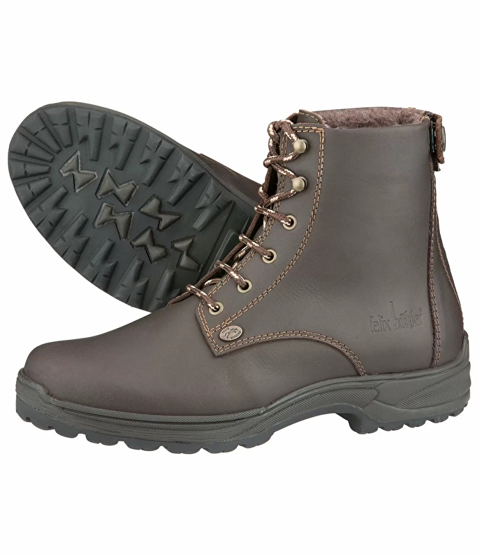 Wytrzymałe, zimowe buty stajenne z zamkiem błyskawicznym z tyłu umożliwiającym szybkie zakładanie i zdejmowanie. Materiał wierzchni wykonany z trwałej, wysokiej jakości skóry cielęcej, ciepła podszewka wykonana w 100% z owczej wełny. Solidna gumowa podeszwa z przyjaznym dla jazdy obcasem gwarantuje optymalną przyczepność na śliskich nawierzchniach. Amortyzująca wkładka w strzemieniu jest wyjmowana. Wyprodukowano w Portugalii.