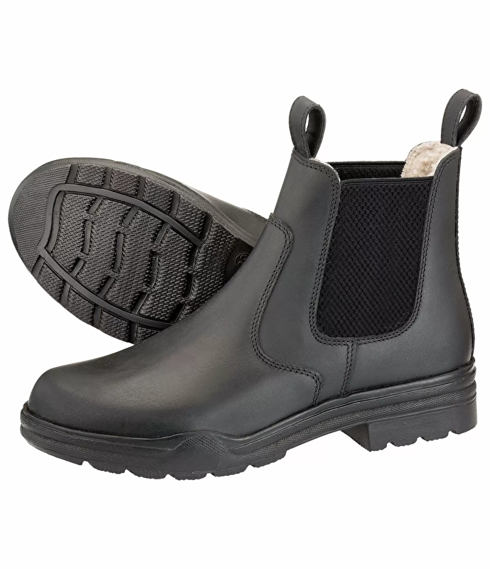 Buty wykonane z olejowanej skóry, podszyte ciepłym polarem typu „teddy”. Elastyczne wstawki po obu stronach i dwie szlufki umożliwiają szybkie zakładanie i zdejmowanie. Profilowana podeszwa z przyjaznym dla jazdy obcasem wykonana jest z antypoślizgowej gumy i gwarantuje najlepszą przyczepność w strzemieniu i na śliskich nawierzchniach.