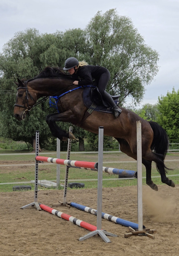 Startowała w skokach do klasy L i nadal z radością pokonuje przeszkody – przy odpowiedniej współpracy bez problemu pójdzie parkury do 130 cm.