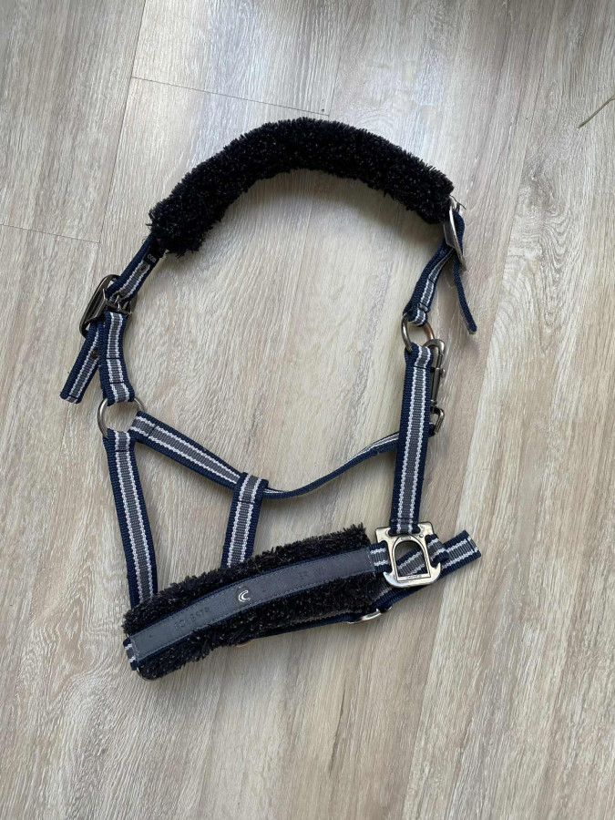 Sprzedam kantar Cavallo Helia Darkblue – elegancki i komfortowy model z odpinanym sztucznym futerkiem na nosie i potylicy. Idealny dla wrażliwych koni, które potrzebują dodatkowej ochrony przed otarciami.