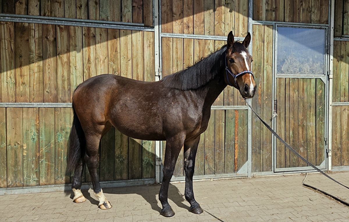 https://baza.pzhk.pl/horse/id/1594139.html (na ostatnim zdjęciu rodzice). Rasa Oldenburska. Charakteryzuje się świetnym elastycznym ruchem. Maści ciemnogniadej, pięknie malowana - dwa równe tyły oraz długa odmiana na pysku.