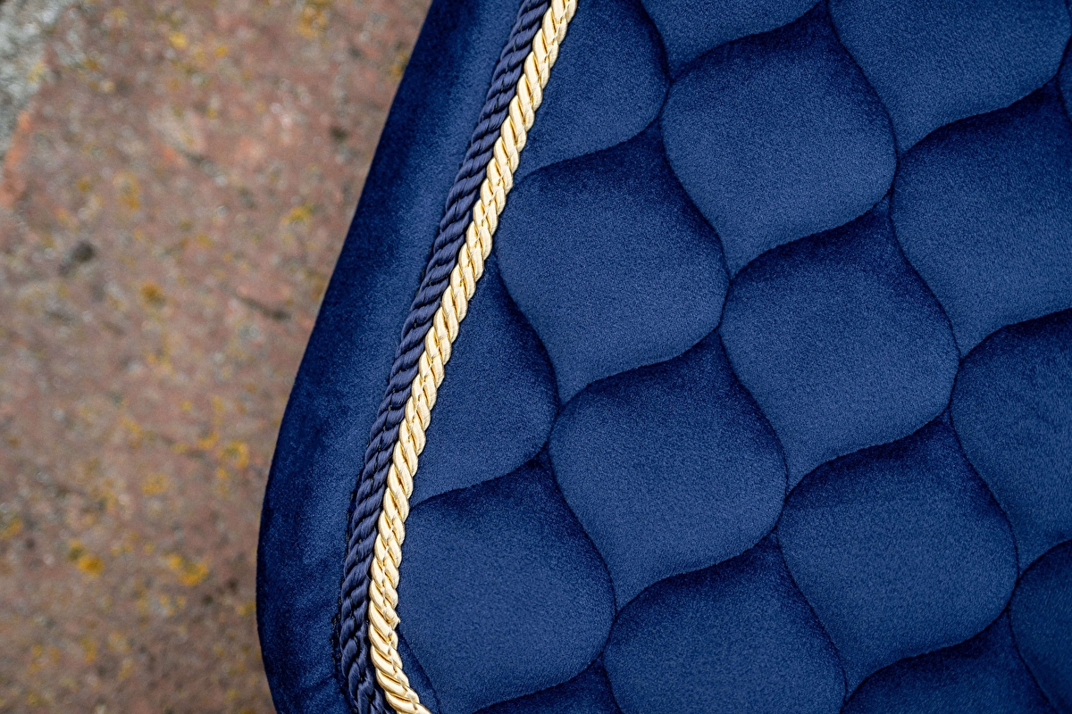 Drobno pikowany czaprak dla konia. Materiał wierzchni to velvet o zwiększonej odporności na ścieranie. Nie blaknie na słońcu i pięknie wygląda. Spodnia strona wykonana z siateczki ułatwiającej odprowadzanie potu. Specjalne wypełnienie i drobne pikowanie sprawiają, że czaprak jest odpowiednio elastyczny.
