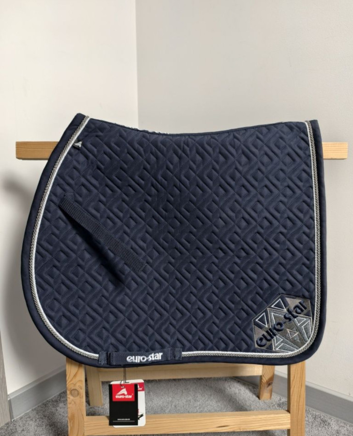 Sprzedam nowy czaprak skokowy znanej marki Euro-Star. Wykonany z dobrej jakości materiałów, od spodu posiada siatkę wchłaniająca pot konia. Czaprak w kolorze granatowym, Full VS skokowy