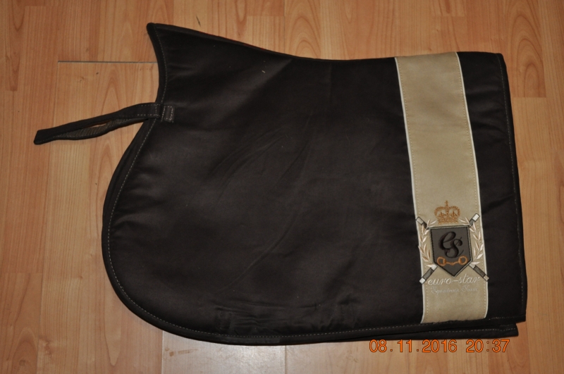 Sprzedam czaprak z kolekcji firmy Euro-Star. Lekko profilowany kłąb. Ozdobne logo w lewym dolnym rogu. Wyprodukowany w/g najnowszej technologii. Warstwa wierzchnia wykonana z materiału SIMILEATH stworzonego specjalnie dla firmy Euro-Star. Wygląda jak zamszowa skóra i w dotyku czuje się skórę. Wypełnienie - materiał SYNTHERMAX - lekki i oddychający. Spód czapraka wykonany z siateczki IQ CIBA odbierającej i odparowującej pot.