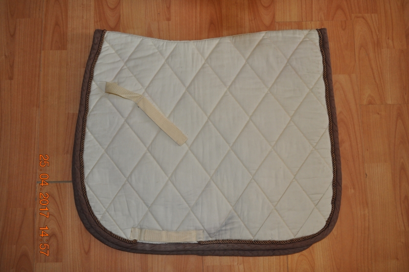 Sprzedam kremowy, ujeżdżeniowy czaprak firmy Everline w bardzo dobrym stanie. Czaprak obszyty brązową lamówką i pozłacanym sznurkiem. Pikowany w romby. Zadbany. Stan jak na zdjęciach. Rozmiar cob.