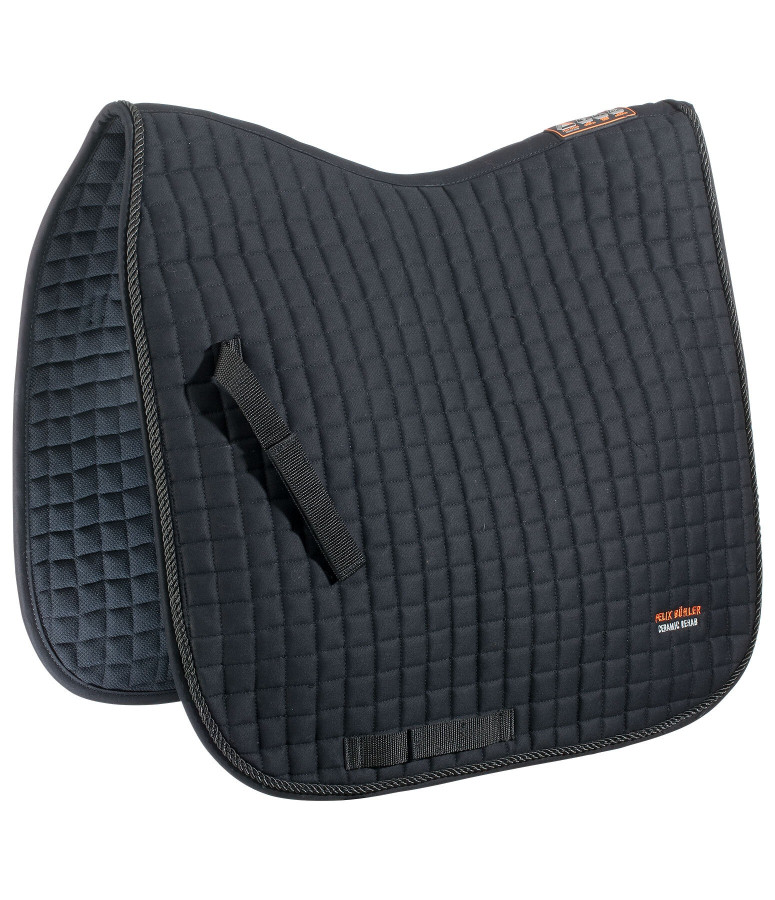 Prosty, oddychający czaprak z minimalistycznym pikowaniem i dyskretnym, jednostronnym haftem z logo. Wewnętrzna podszewka wykonana jest z oddychającej siateczki Air Mesh z dodatkiem włókien ceramicznych, która stymuluje krążenie krwi w mięśniach pleców, sprzyjając relaksowi podczas jazdy. Wyposażony w szlufki na siodło i popręg z systemem KV. Materiał wierzchni: 100% bawełna, spód: 100% poliester. Sposób użycia: Nosić produkt maksymalnie 4 godziny dziennie przez pierwsze kilka dni, aby organizm mógł stopniowo przyzwyczaić się do efektu. Stopniowo wydłużać czas noszenia.