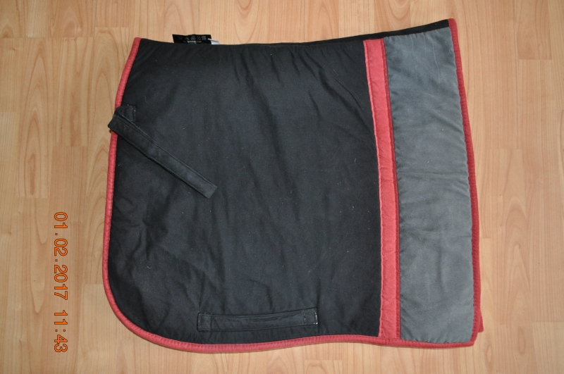 Sprzedam używany, w bardzo dobrym stanie czaprak firmy Loesdau Horse Friends o profilu ujeżdżeniowym (DR). Czaprak w kolorze czarno-szarym z czerwonymi obszyciami. Od wewnątrz podszyty siateczką wchłaniającą lepiej pot. Rozmiar full.