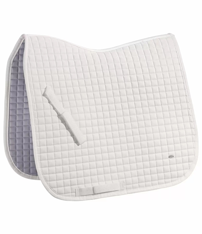 Dyskretny, stabilny wymiarowo czaprak bawełniany z minimalistycznym pikowaniem i filigranową blaszką w kolorze srebrnym z dyskretnym grawerem logo. Siodełko i szlufki z praktycznymi KV-ami. Spód z pochłaniającego wilgoć i oddychającego materiału Air Mesh. Na zewnątrz 100% bawełna, wyściółka i spód 100% poliester.