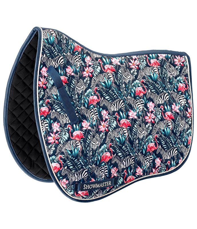 Stylowy czaprak pod siodło z nadrukiem dżungli i sportowym krojem. Szlufki z praktycznym zapięciem na rzep. Dół wykonany z oddychającej, pochłaniającej wilgoć siatki powietrznej. 100% poliestru.