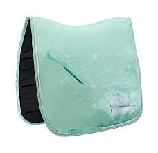 Czarujący czaprak/pad pod siodło o marzycielskim designie Winter Wonderland i dwóch ozdobnych sznurkach. Siodło i szlufki z praktycznym zapięciem na rzep. Dół wykonany z oddychającej i pochłaniającej wilgoć siatki powietrznej. 100% poliestru.