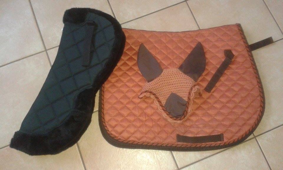 6) pomarańczowy czaprak(tylko w komplecie z nausznikami), stan db+; 90 zł