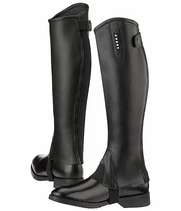 Czapsy w eleganckim wyglądzie wysadzane cyrkoniami. Cholewka z syntetycznej skóry licowej, elastyczna wkładka wzdłuż mocnego zamka błyskawicznego YKK z tyłu dla idealnego dopasowania na łydce. Dalsze szczegóły: zapięcie na napy, elastyczny pasek podeszwy i lekka polarowa podszewka.