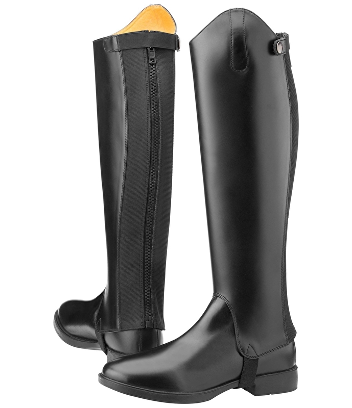 Klasyczne czapsy z gładkiej skóry bydlęcej, podszewka z miękkiej świńskiej skóry. Optymalne dopasowanie dzięki elastycznym wstawkom wzdłuż solidnego zamka błyskawicznego YKK. Dalsze szczegóły: zapięcie na zatrzask i solidny pasek podeszwy.