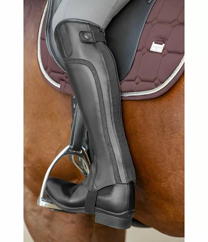 Dzięki dołączonym brokatowym paskom ten model czapsów naprawdę przyciąga wzrok. Na podkreślenie zasługuje optymalne dopasowanie i świetny wygląd sztucznej skóry. Elastyczna wstawka wzdłuż solidnego zamka YKK z tyłu zapewnia optymalne dopasowanie do łydki.