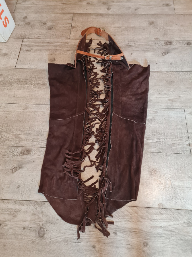 Wytrzymałe czapsy westernowe, wykonane ze skóry wysokiej jakości. Z solidnymi zamkami. Rozmiar regulowany z przodu i z tyłu paska - skórzane, bardzo ładnie zdobione zapięcia.