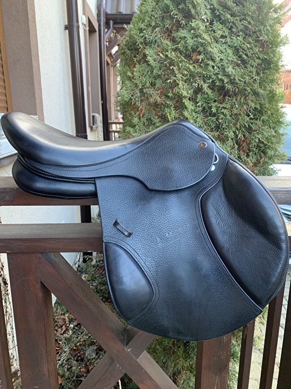 Czarne siodło skokowe Ryszard Andersz 18”, w stanie idealnym. Koszt nowego to 6600 zł. Robione na zamowienie, jeżdżone tylko rok. Nie wysyłam za pobraniem, możliwość przymiarki za darmo do 30 km od Krakowa. Możliwość zakupu puślisk i strzemion za 50 zł (ostatnie zdjęcie).