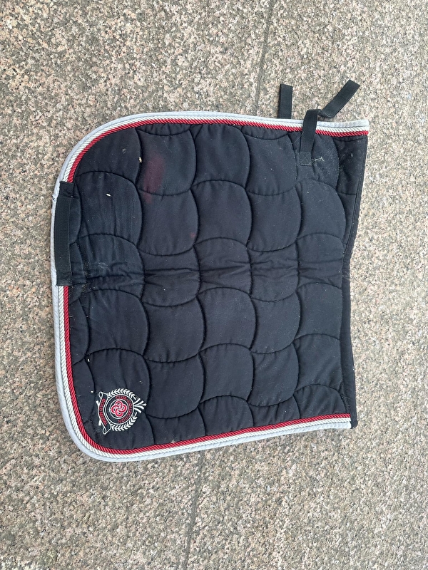 Sprzedam, czarny, czaprak marki Gold Medal. Rozmiar full, profil ujeżdżeniowy, stan jak na zdjęciach (wymaga wyprania oraz m.in. plama, przetarcia od popręgu, drobne zmechacenia). Podszyty jest, bardzo dobrze odprowadzającym wilgoć, waflowym materiałem. Cena 10 zł.