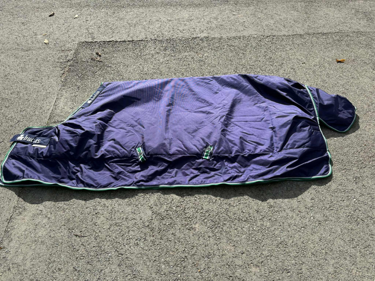 Sprzedam derke Bucas Smartex 300g. Wedlug producenta nadaje się na temperatury od +10 do -20 stopni. Używana jeden sezon na golonym koniu. Stan idealny - bez dziur, przetarć, wszystkie paski i zapięcia sprawne, wyprana. Pojedyncze rude kłaki na podszewce.