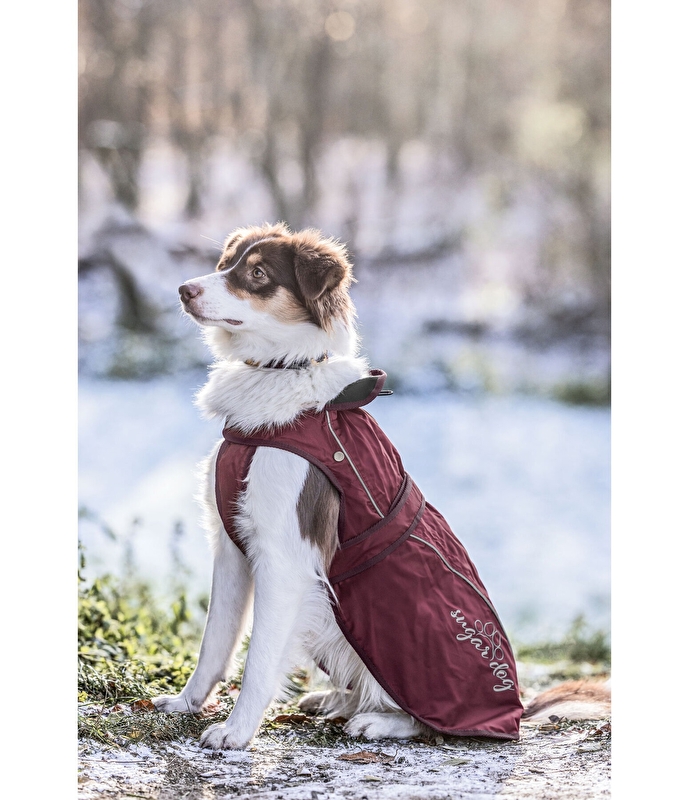 Sportowy płaszcz przeciwdeszczowy dla psów z wewnętrzną podszewką, którą można odpiąć za pomocą zatrzasków. Z odblaskową lamówką i nadrukiem z logo. Kołnierzyk z regulowanym obszarem szyi z gumką i stoperem. Łatwe zakładanie i zdejmowanie dzięki zapięciom na rzepy na piersi i brzuchu. Pomocne, ukryte paski na nogi zapobiegają zsuwaniu się. Materiał wierzchni Nylon Oxford, podszewka 65% poliester, 35% bawełniany polar, podszewka 100% bawełna.