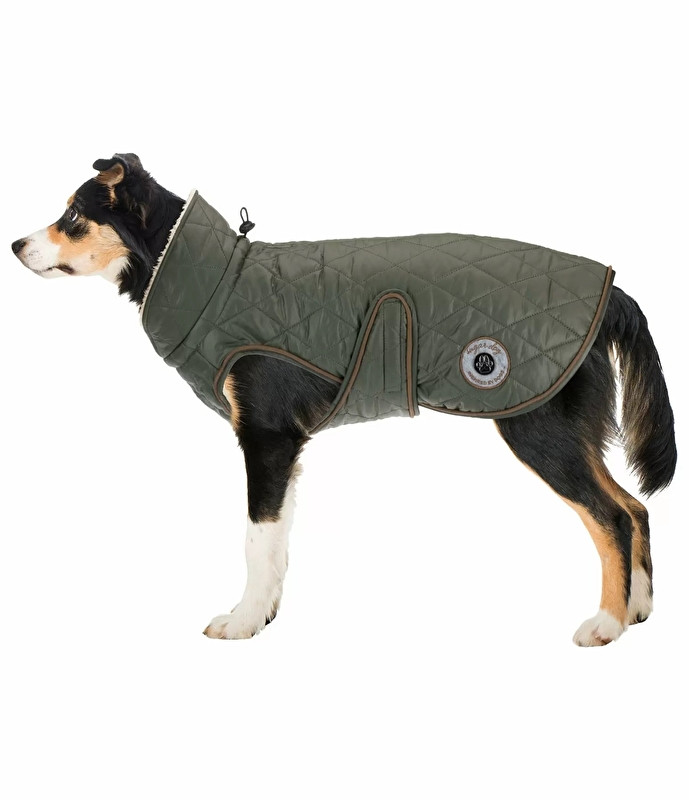 płaszcz dla psa z przytulną i ocieplającą podszewką z polaru pluszowego, lekkim wypełnieniem 160 g i małym kołnierzem. Dekolt regulowany w rozmiarze. Szybkie i łatwe mocowanie na piersi i brzuchu z dwustronnym KV. Z przejściem do mocowania smyczy.