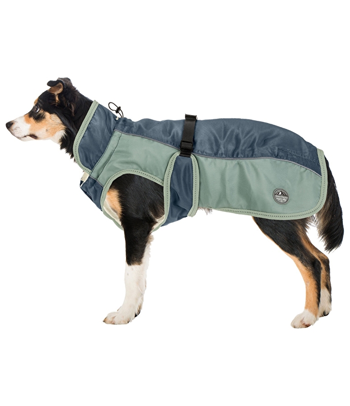 Ciepły i wodoodporny płaszcz zimowy (300 den, wodoodporność 1000 mm, oddychalność 1000 g/m2/24h) w dwukolorowym kroju z ociepleniem 100 g, ochronnym wysokim kołnierzem i miękką podszewką z pluszowego polaru dla komfortowego klimatu. Możliwość indywidualnego dopasowania rozmiaru dzięki pasowi biodrowemu o regulowanej długości z zapięciem na klips, regulowanemu dekoltowi i zamkowi błyskawicznemu w okolicy klatki piersiowej. Wyposażone w odblaskowe detale i ukryte, elastyczne paski na nogi. 100% poliestru.