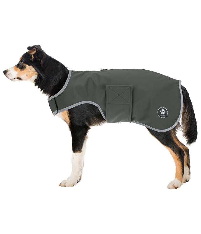 Wyjątkowo lekki, wodoodporny i oddychający płaszcz dla psa (100 den) wykonany z wiatroszczelnego materiału typu softshell. Wewnętrzna wyściółka z szorstkiego polaru zapewnia komfortowy klimat. Łatwe zapinanie za pomocą KV w okolicy klatki piersiowej i klapy na brzuchu. Sportowy krój z wysokim wycięciem na ramiona zapewnia maksymalną swobodę ruchów. Nadaje się również do szkolenia psów lub ćwiczeń wytrzymałościowych. Odblaskowe lamówki dookoła dla większego bezpieczeństwa na drodze. Naszywka z logo również odzwierciedla. Bez przeszkadzającego kołnierza. Dostępne wodoodporne przejście uprzęży i ​​elastyczne paski na nogi. 100% poliestru.