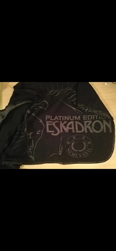Derka Eskadron Platinum z niedostępnej już nigdzie kolekcji 2017/2018 Rozm. M - 135 cm black. Derka polarowa osuszająca, używana kilka razy, super stan. Zdjęcia jaśniejsze są wynikiem światła. Mogę sprzedać w komplecie z owijkami tej samej kolekcji po niższej cenie owijek.