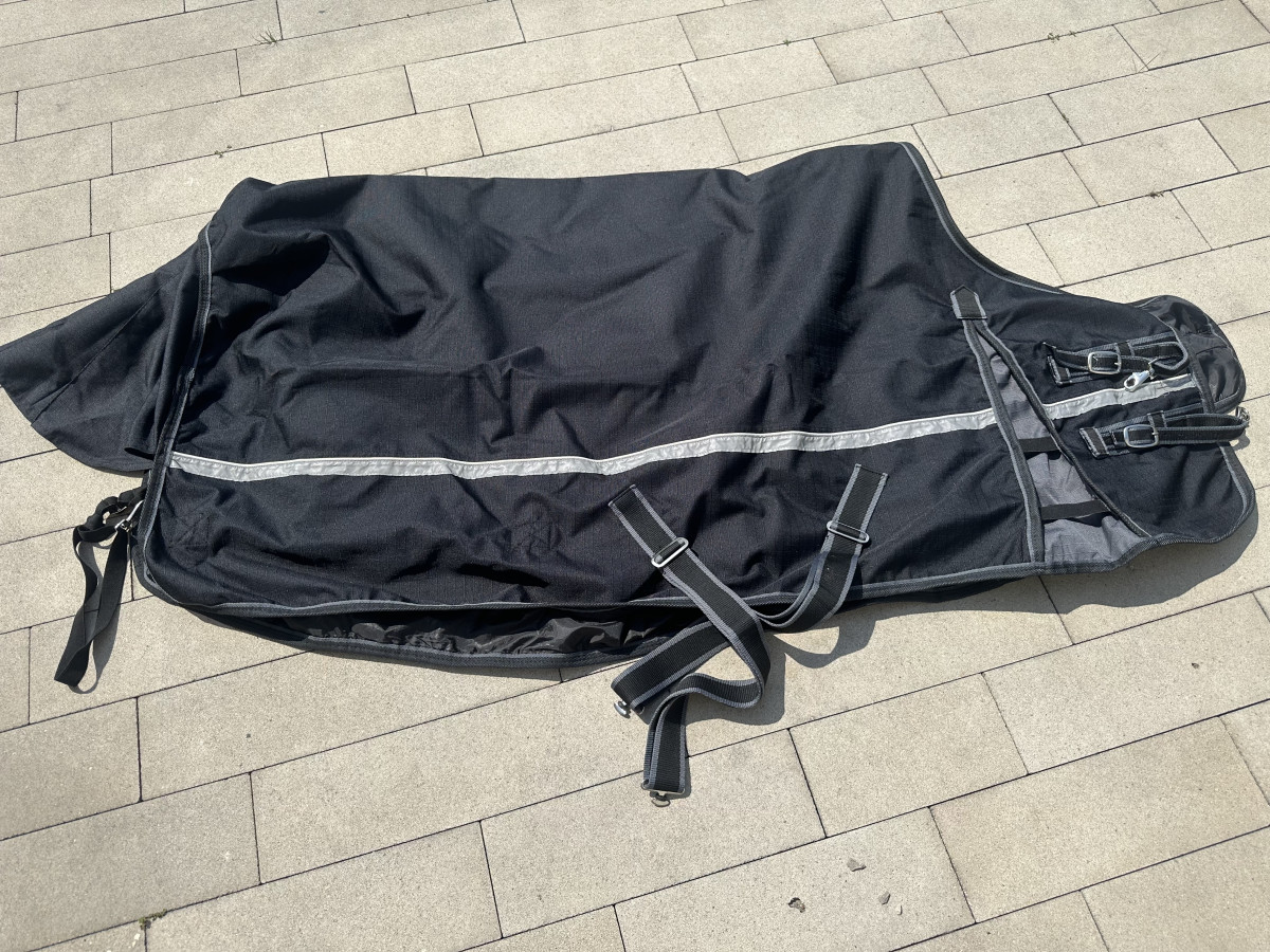 Na sprzedaz derka Kavalkade Alaska IV na polarze rozm 115. Derka jest w bardzo dobrym stanie, krotko uzytkowana, a potem wyczyszczona w profesjonalnej pralni. Ma jedna mala dziurke w podszewce w miejscu zapiecia (widoczna na zdjeciach). Tak poza tym praktycznie nie widac ze byla uzywana.
