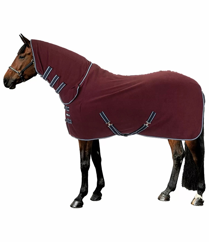 Przytulna i pochłaniająca wilgoć derka wykonana z miękkiego, oddychającego polaru antypillingowego z dołączoną częścią szyjną. W razie potrzeby można go zwinąć i przymocować z boku za pomocą 2 pasków. Idealny dla koni, które mocno pocą się w okolicy szyi, a także dla koni, które zostały całkowicie strzyżone. Gładka, przyjazna dla futra podszewka w okolicy grzywy, klatki piersiowej i ramion. Z podwójnym zapięciem z przodu o regulowanej wielkości, krzyżowymi paskami i paskiem na ogon o regulowanej długości. 100% poliester.