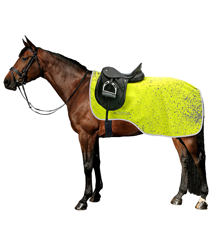 Praktyczna derka treningowa z eleganckim odblaskowym nadrukiem i lamówką dla lepszej widoczności w ruchu ulicznym. Wodoodporny, wiatroodporny i oddychający (1200 den, wodoodporność 3000) materiał. Łatwe mocowanie przed siodłem za pomocą KV. 100% poliestru.