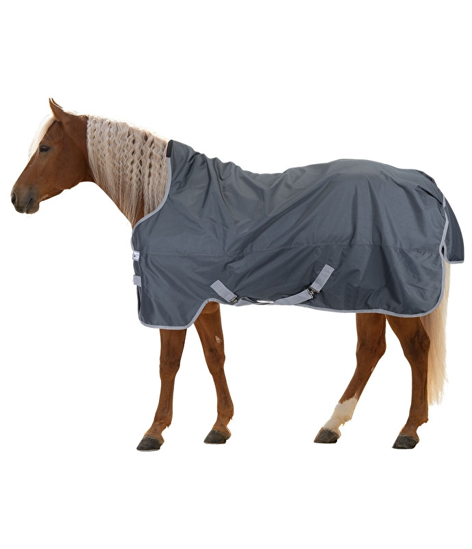Wodoodporna, oddychająca derka przeciwdeszczowa z wysokim kołnierzem. Wysoka odporność na rozdarcie (1680 denier). Słup wody 3000 mm. Wnętrze derki ma gładką nylonową wyściółkę: zapobiega to otarciom i łamaniu się włosów, a futro pozostaje gładkie i lśniące. Z podwójnym zapięciem na klatce piersiowej (zapięcie typu T) i paskami krzyżowymi. 100% poliestru.