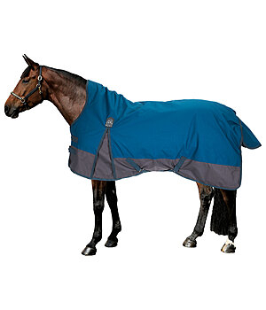 Wytrzymała, wodoodporna i oddychająca derka outdoorowa (słup wody 4000 mm, oddychalność 3000 g/m²/24h) wykonana z odpornego na rozdarcia materiału funkcjonalnego ripstop o gęstości 1000 denierów z ochronnym wysokim kołnierzem, który umożliwia lepsze rozłożenie nacisku i odciążenie kłębu. Z lekką wyściółką 150 g. Obszerny klin zapewniający optymalną swobodę ruchów. Listwa okapowa w kontrastującym kolorze. Gładka, przyjazna dla futra podszewka. Wyposażony w podwójne zapięcie z przodu na hak w kształcie litery T, poprzeczne pasy i regulowany pasek na ogon. Dostępne urządzenie do opcjonalnego mocowania pasów na nogi. Opcjonalnie dostępne w różnych wyściółkach. 100% poliestru.