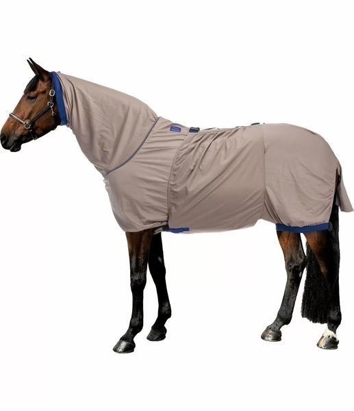 Ta derka jest zbawieniem dla Twojego czworonożnego przyjaciela cierpiącego na egzemę. Składa się z oddychającego, cienkiego funkcjonalnego materiału włóknistego i dlatego ma tę zaletę, że wysycha wyjątkowo szybko. Model ten gwarantuje również niezawodną ochronę przed promieniowaniem UV. Szyja i ogon są optymalnie zakryte. Istnieje również klapa brzuszna, którą można zdjąć za pomocą klipsów. Pomimo wszechstronnej ochrony derka zapewnia optymalną swobodę ruchów na padoku dzięki elastycznemu materiałowi! Poślizgowi zapobiegają elastyczne paski na nogach.