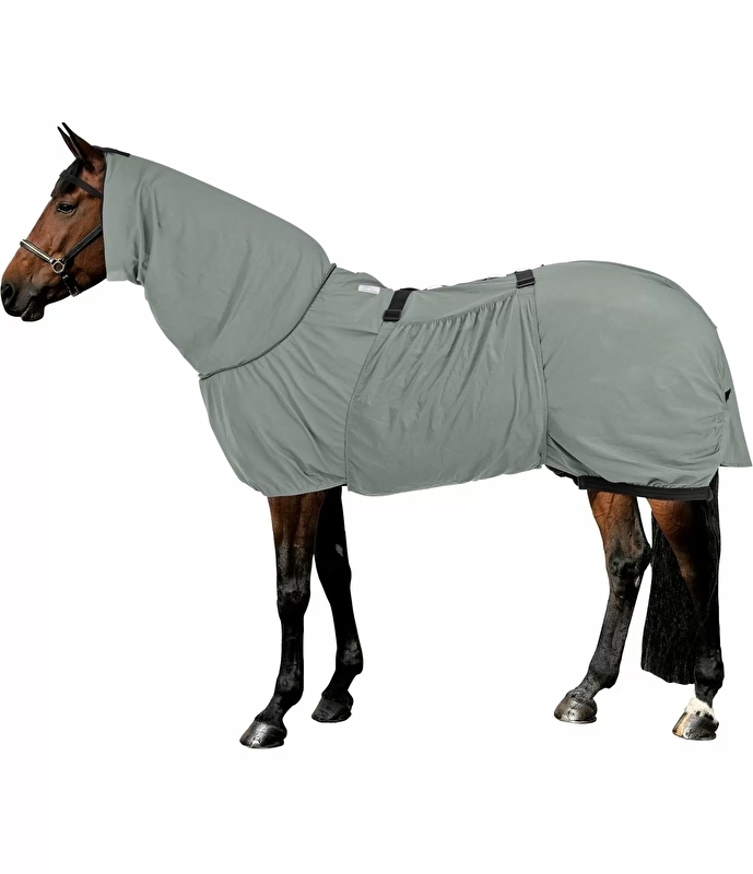 Ta derka jest zbawieniem dla Twojego czworonożnego przyjaciela cierpiącego na egzemę. Składa się z oddychającego, cienkiego funkcjonalnego materiału włóknistego i dlatego ma tę zaletę, że wysycha wyjątkowo szybko. Model ten gwarantuje również niezawodną ochronę przed promieniowaniem UV. Szyja i ogon są optymalnie zakryte. Istnieje również klapa brzuszna, którą można zdjąć za pomocą klipsów. Pomimo wszechstronnej ochrony derka zapewnia optymalną swobodę ruchów na padoku dzięki elastycznemu materiałowi! Poślizgowi zapobiegają elastyczne paski na nogach.