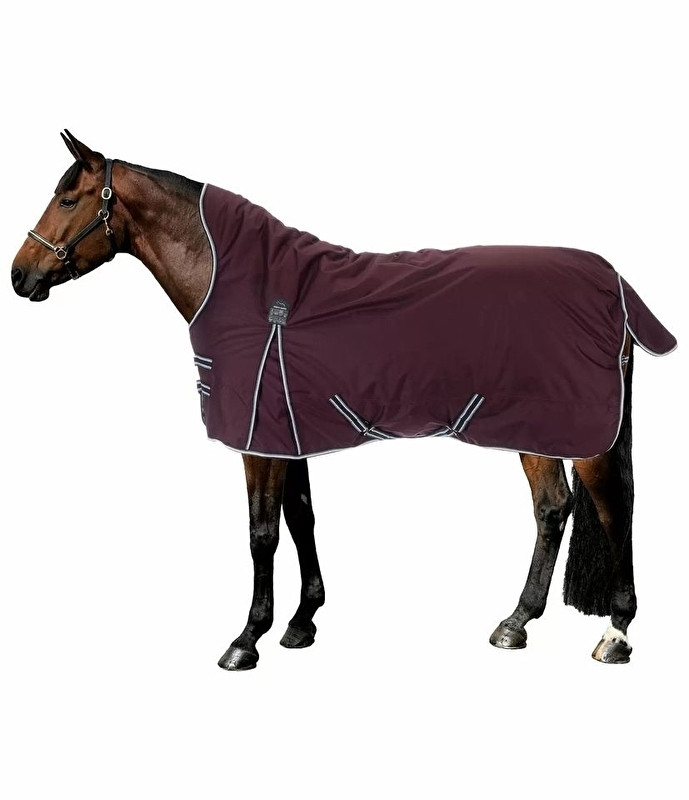 Funkcjonalna, wodoodporna i oddychająca derka przeciwdeszczowa z wysokim kołnierzem wykonana z materiału ripstop 600 denier (słup wody 3000 mm, oddychalność 3000 g / m2 / 24 h). Nowoczesny krój z wysokim kołnierzem zapobiega przedostawaniu się wody w okolice ramion i zapewnia niezawodną ochronę, zwłaszcza podczas ulewnego deszczu. Highneck zapobiega również niepotrzebnemu naciskowi w okolicy kłębu. Z klinem zapewniającym optymalną swobodę ruchów, zapięcie na piersi z podwójnym haczykiem T z dodatkowym KV, regulowane pasy krzyżowe i klapa ogonowa. Zawiera ringi do mocowania pasów między nogi i regulowany pasek na ogon. Gładka, przyjazna dla futra podszewka. 100% poliester.