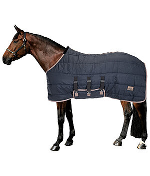 Wszechstronna, stabilna derka, która może być również używana jako derka stajenna, transportowa lub wkład pod derkę padokową. Dzięki mocnemu materiałowi zewnętrznemu o grubości 600 denierów jest wytrzymały i odporny na zabrudzenia. Lekkie wypełnienie 200 g zapewnia dobrą cyrkulację powietrza i lekką ochronę przed pierwszymi chłodnymi nocami w okresie przejściowym. Bez irytujących zamknięć piersi. Z małym dekoltem w kształcie litery V zapewniającym wygodne obniżenie szyi. Obszar kłębu jest w dużej mierze wyłożony miękkim pluszowym futerkiem. Z wszechstronnym ochronnym i ocieplającym materiałem na brzuchu (klapą) z elastycznymi zapięciami na haczyki, gładką, przyjazną dla futra wyściółką wewnętrzną i paskiem na ogon o regulowanej długości. 100% poliester.
