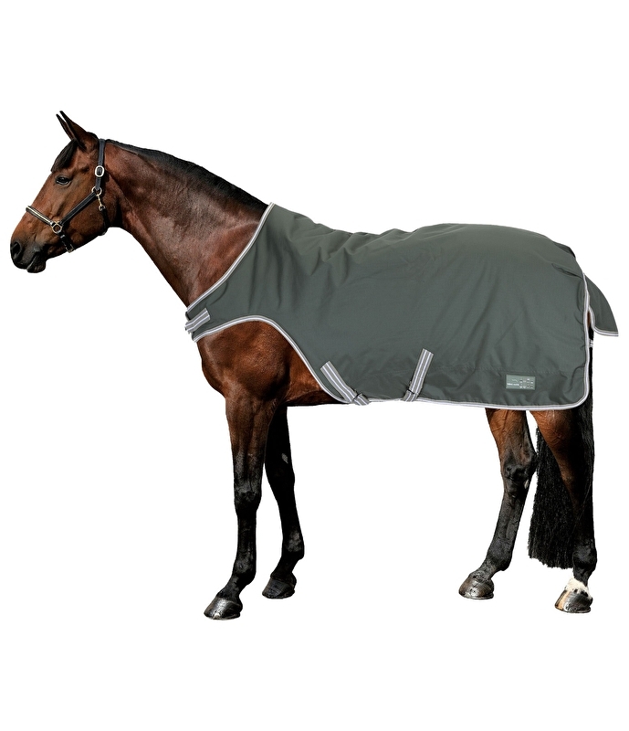 Wodoodporna i oddychająca derka spacerowa z kontrolowanym wycięciem w obszarze klatki, wykonana z materiału ripstop 600 denier (słup wody 3000 mm, oddychalność 3000 g / m2 / 24h). Chroni okolice nerek i tułów przed zimnem, wilgocią i wiatrem. Idealny do lonżowania lub prowadzenia. Z prostym zapięciem na klatkę piersiową w kształcie litery T , regulowanymi paskami krzyżowymi, a także regulowanym paskiem na ogon i klapą ogonową. Gładka, przyjazna dla futra podszewka. 100% poliestru.