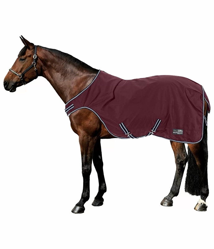 Dla maksymalnej swobody ruchów: nieprzemakalna i oddychająca derka outdoorowa z obszernym wycięciem na przodzie, wykonana z materiału ripstop 600 den (3000 mm słupa wody, oddychalność 3000 g/m2/24h) bez wyściółki. Niezawodnie chroni obszar nerek i tułów przed wilgocią i wiatrem. Idealna do lonżowania, na spacer lub do karuzeli. Z prostym zapięciem na piersi w kształcie litery T i dodatkowym KV, regulowanymi paskami krzyżowymi oraz regulowanym paskiem na ogon i klapą na ogon. Gładka, przyjazna dla futra podszewka wewnętrzna 100% poliester.