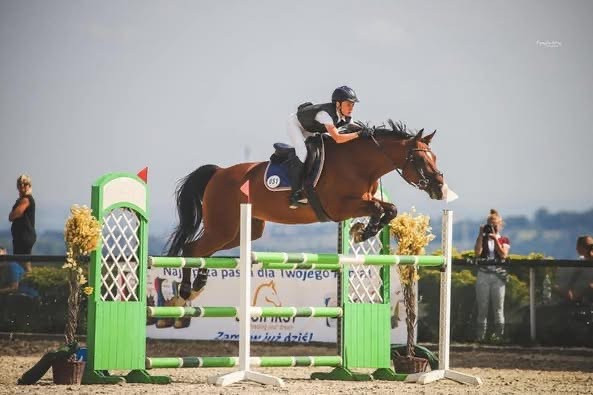 Dobry koń zarówno dla juniora młodszego jak i dla juniora. Startujący do 130 cm. Dobrze ujeżdżony. W regularnym treningu skokowym. Idealny do nauki skoków w domu czy w szkółce.