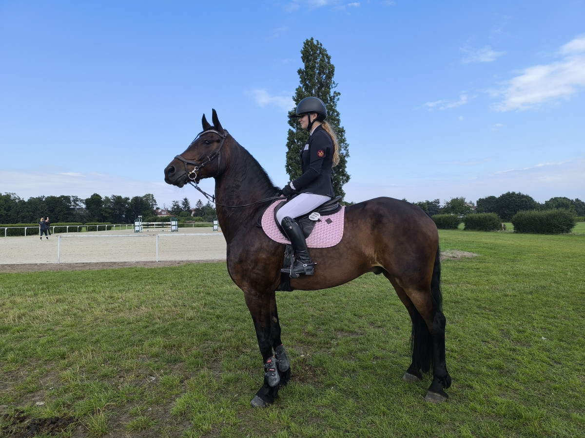 Koń o wyjątkowej urodzie, przykuwający wzrok 9-letni duży, postawny wałach wszechstronny. Mieszanka fryza i klaczy szlachetnej. Zdrowy, silny, zadbany. Pracuje poprawnie w domu oraz w terenie. Kilka razy startował w zawodach skokowych (hala i otwarte place). Z pewnością może być towarzyszem dla większej osoby.